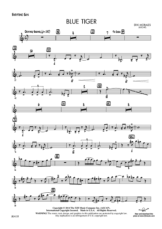 Digital Sheet Music for Blue Tiger - Baritone Sax by Erik Morales scored for Jazz Ensemble; id:446646