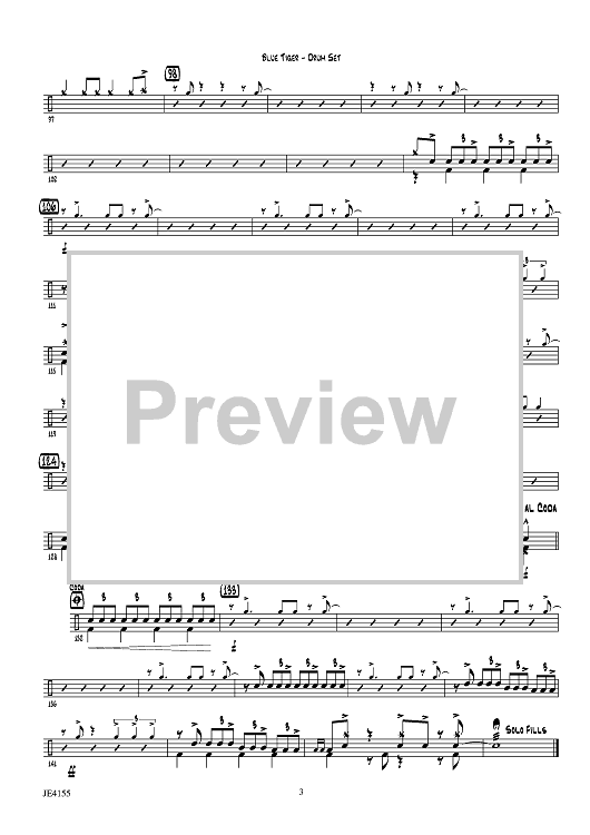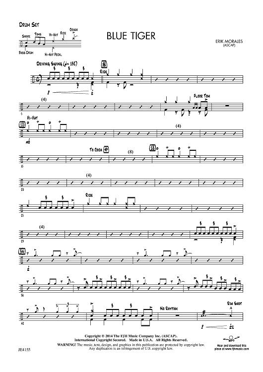 Digital Sheet Music for Blue Tiger - Drum Set by Erik Morales scored for Jazz Ensemble; id:446659