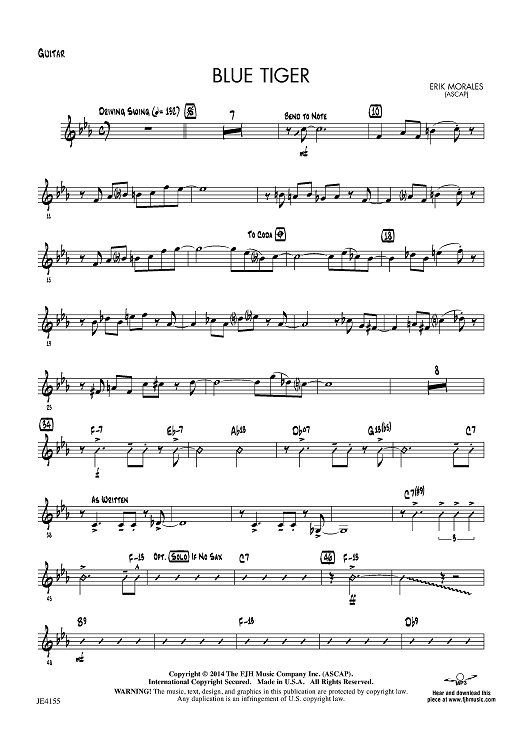 Digital Sheet Music for Blue Tiger - Guitar by Erik Morales scored for Jazz Ensemble; id:446656