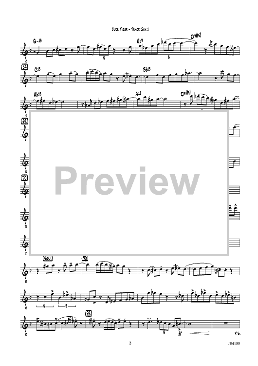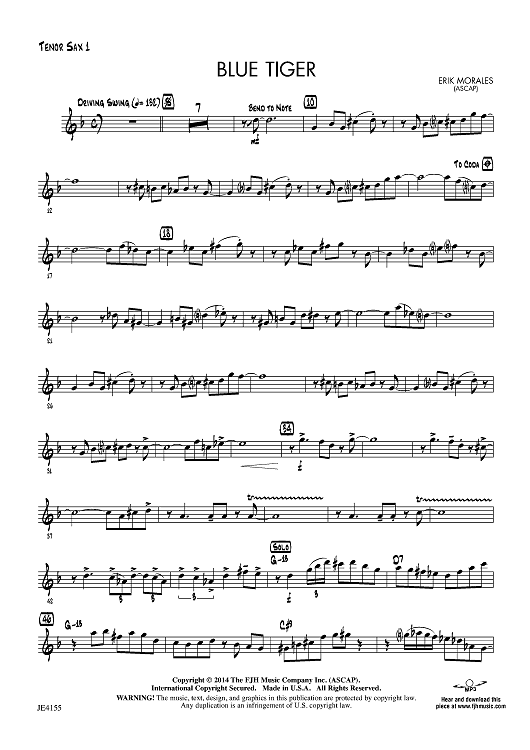 Digital Sheet Music for Blue Tiger - Tenor Sax 1 by Erik Morales scored for Jazz Ensemble; id:446644