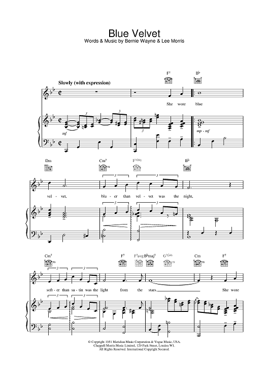 Digital Sheet Music for Blue Velvet by M People scored for Piano/Vocal/Chords; id:376346