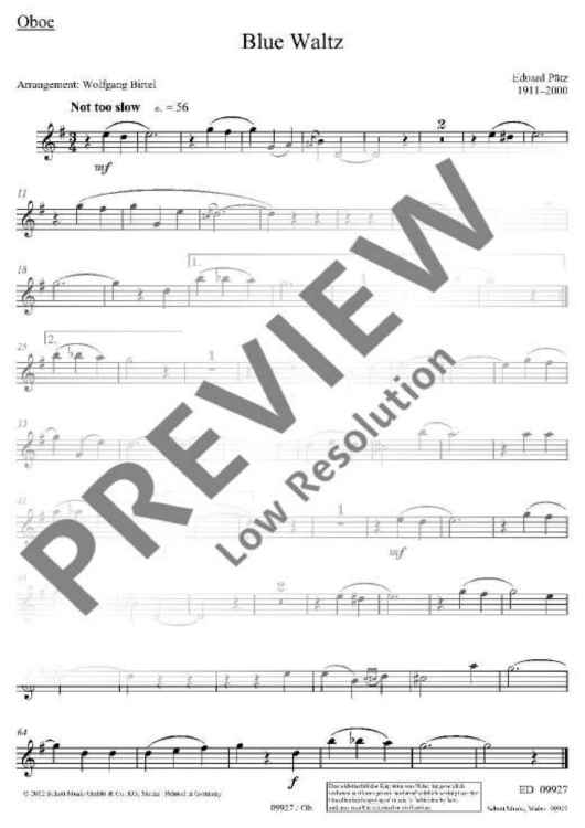 Overcoming the boundaries between 'serious' and entertaining music was what mattered to the musician Eduard Pütz (1911–2000). His compositions therefore include stylistic features of jazz and pop music. Many of his works were written for children and young instrumentalists to offer them a break from the monotony of classical sonatinas and studies. 'Blue Waltz' is such a treat – very easy to play, it carefully helps the player to open a listening ear for jazz sounds. The arrangement for accompanied melodic instrument is also suitable for beginner's lessons and the first ensemble playing.
