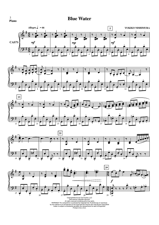 "Blue Water - Piano" Sheet Music by Yukiko Nishimura