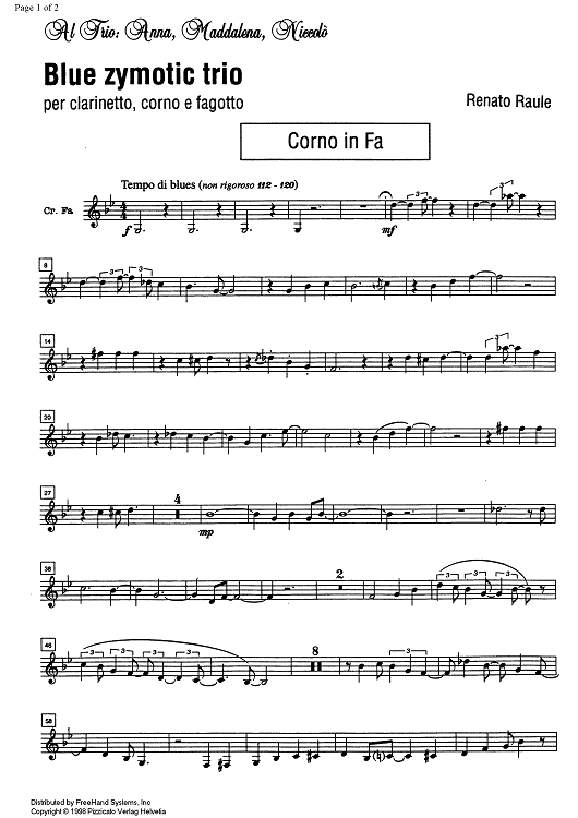 Digital Sheet Music for Blue zymotic - Horn in F by , Renato Raule scored for Clarinet/Bassoon/Horn; id:330552