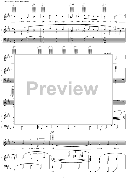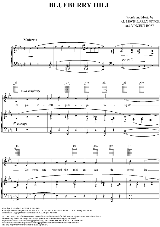 Digital Sheet Music for Blueberry Hill by The Beach Boys, Vincent Rose, Al Lewis, Larry Stock, Fats Domino scored for Piano/Vocal/Chords; id:165115