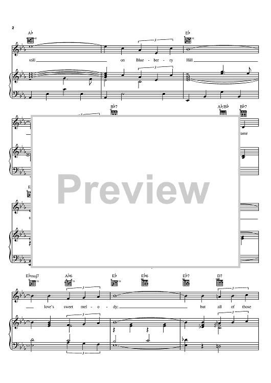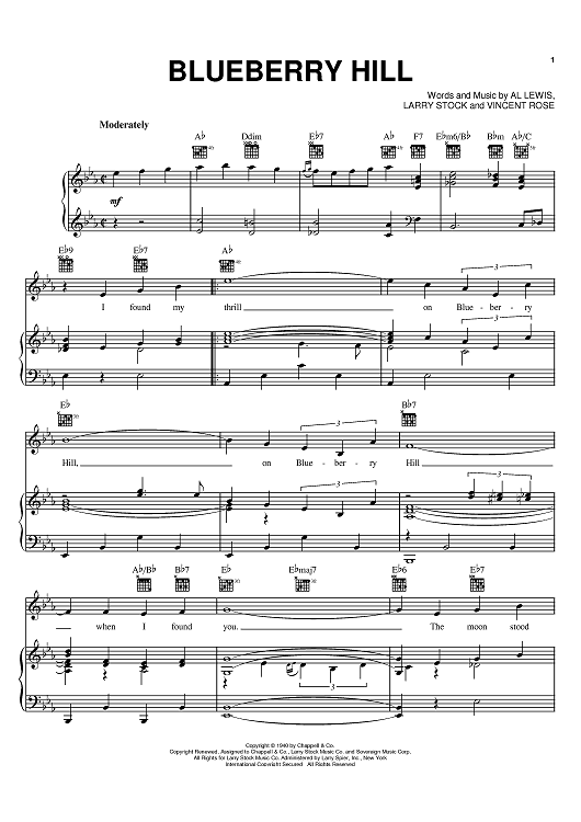 Digital Sheet Music for Blueberry Hill by Vincent Rose, Al Lewis, Larry Stock, Fats Domino scored for Piano/Vocal/Chords; id:368012