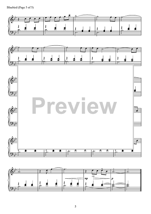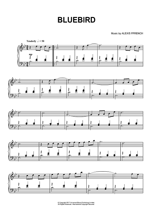 Digital Sheet Music for Bluebird by Alexis Ffrench scored for Piano Solo; id:467306