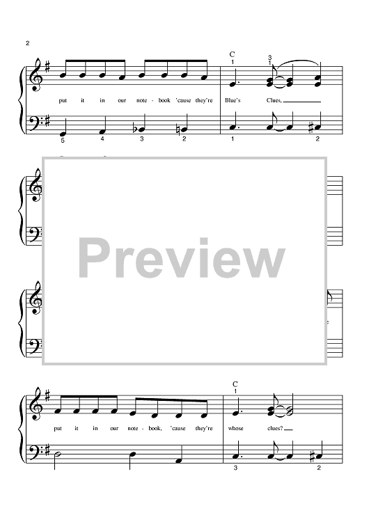 Digital Sheet Music for Blue's Clues Theme by Nick Balaban, Michael Rubin scored for Big Note Piano; id:372824