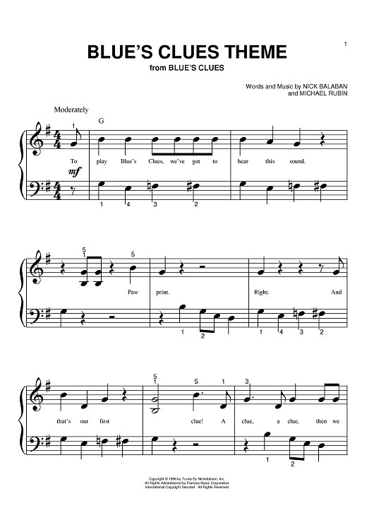 "Blue's Clues Theme" Sheet Music by Nick Balaban