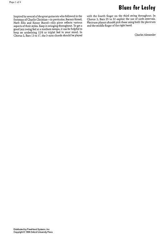 Digital Sheet Music for Blues for Lesley - Notes by , Charles Alexander scored for Guitar; id:349249