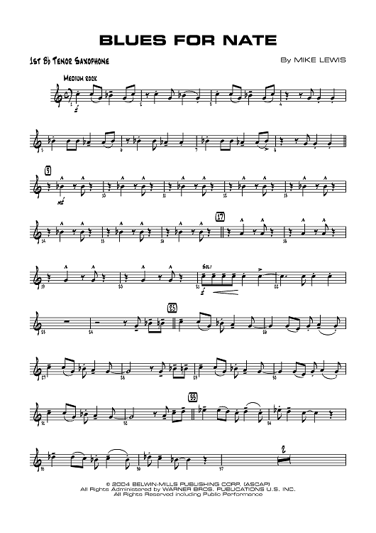 "Blues for Nate - B-flat Tenor Saxophone 1" Sheet Music by Mike Lewis