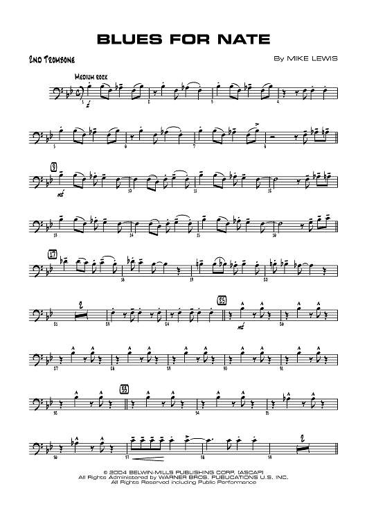 "Blues for Nate - Trombone 2" Sheet Music by Mike Lewis