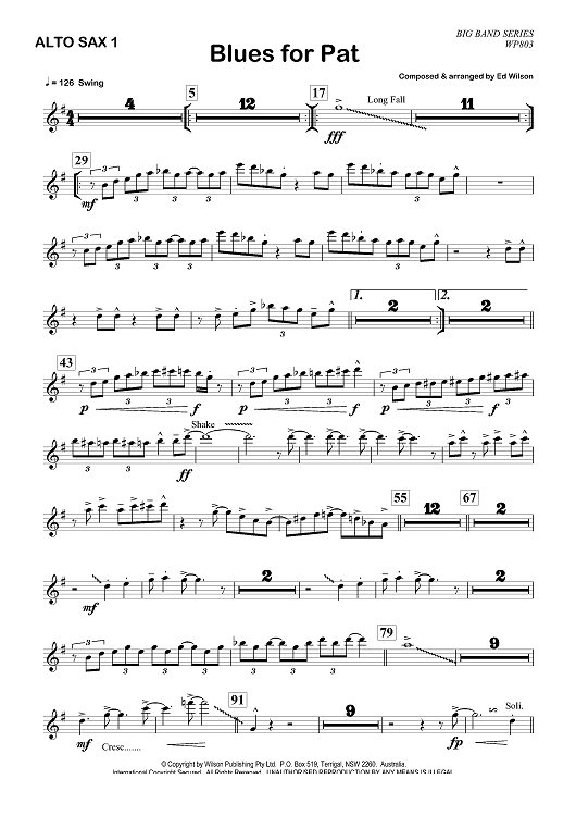 "Blues for Pat - Alto Sax 1" Sheet Music by Ed Wilson