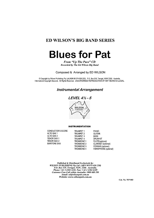 Digital Sheet Music for Blues for Pat - Conductor's Notes by , Ed Wilson scored for Jazz Ensemble; id:356743