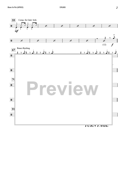 "Blues for Pat - Drums" Sheet Music by Ed Wilson