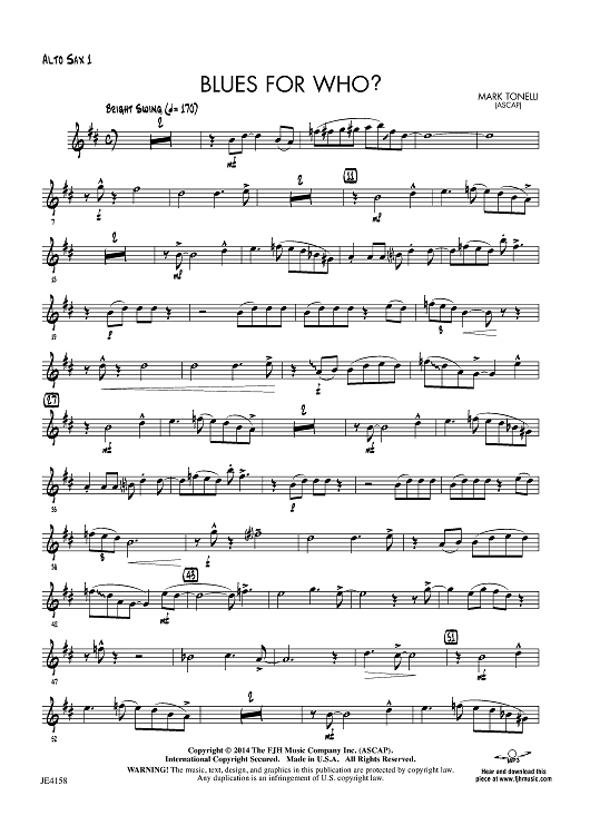 "Blues for Who? - Alto Sax 1" Sheet Music by Mark Tonelli