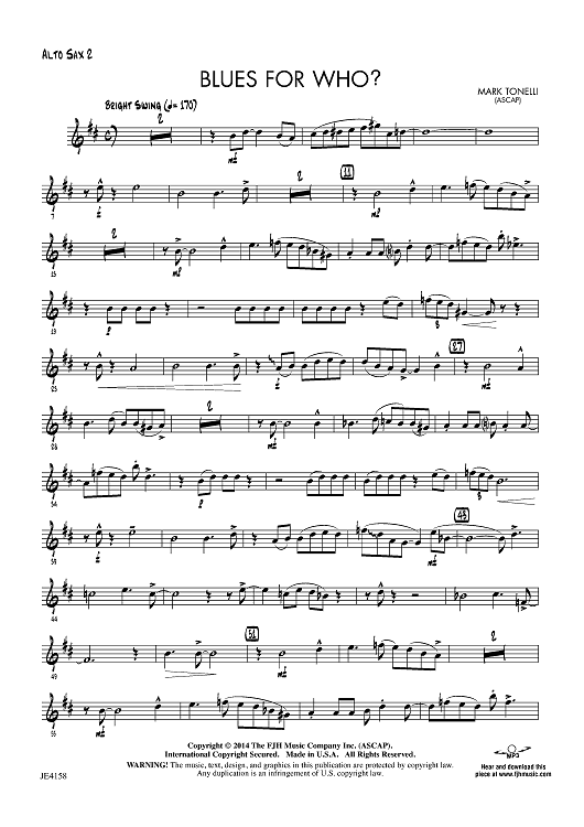 "Blues for Who? - Alto Sax 2" Sheet Music by Mark Tonelli