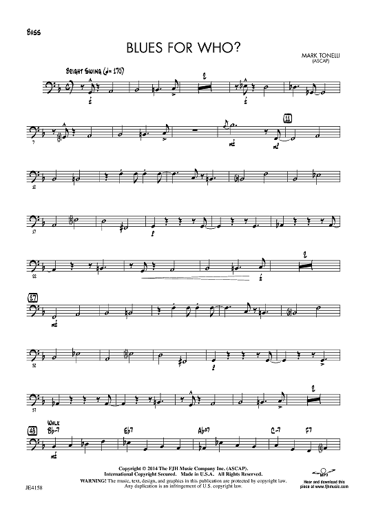 "Blues for Who? - Bass" Sheet Music by Mark Tonelli
