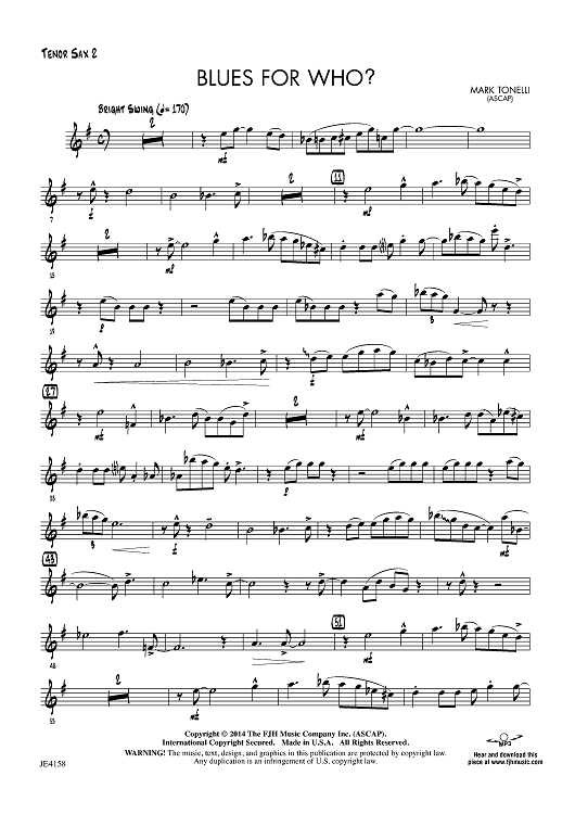 "Blues for Who? - Tenor Sax 2" Sheet Music by Mark Tonelli
