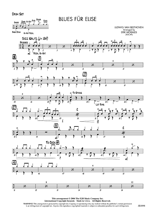 Digital Sheet Music for Blues für Elise - Drum Set by Ludwig van Beethoven, Erik Morales scored for Jazz Ensemble; id:455901