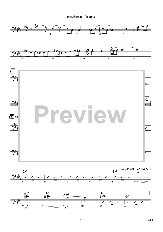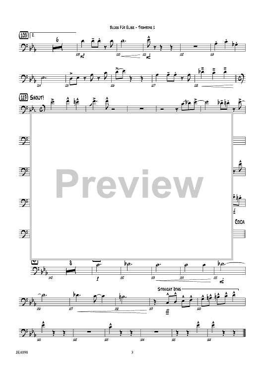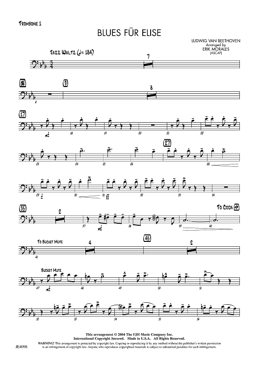 Digital Sheet Music for Blues für Elise - Trombone 1 by Ludwig van Beethoven, Erik Morales scored for Jazz Ensemble; id:455892