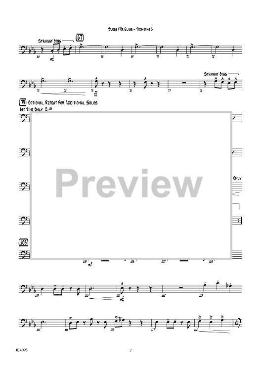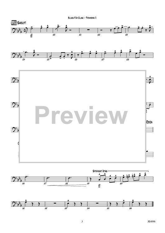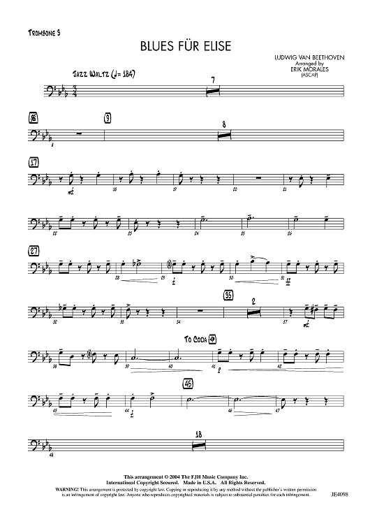 Digital Sheet Music for Blues für Elise - Trombone 3 by Ludwig van Beethoven, Erik Morales scored for Jazz Ensemble; id:455894