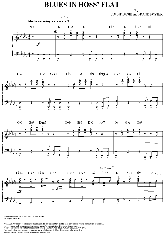 Digital Sheet Music for Blues in Hoss' Flat by Count Basie, Frank Foster scored for Piano Solo; id:289148