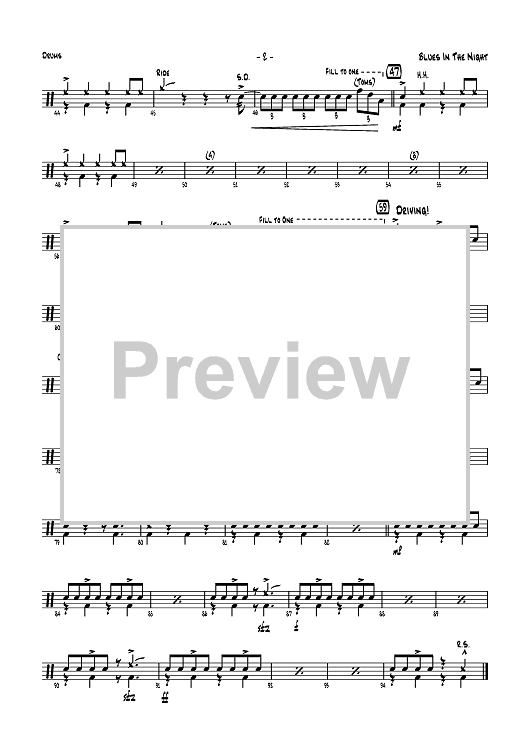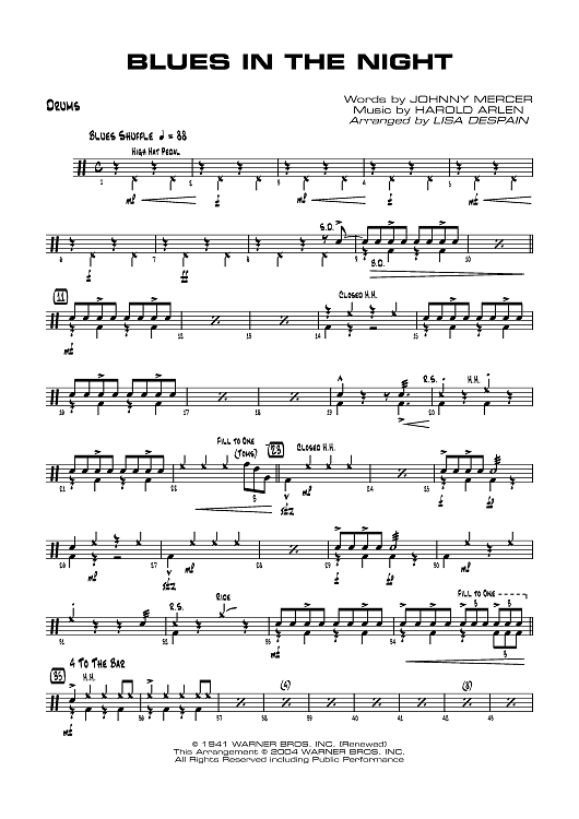 Digital Sheet Music for Blues in the Night - Drums by Harold Arlen, Johnny Mercer, Lisa DeSpain scored for Jazz Ensemble; id:358777