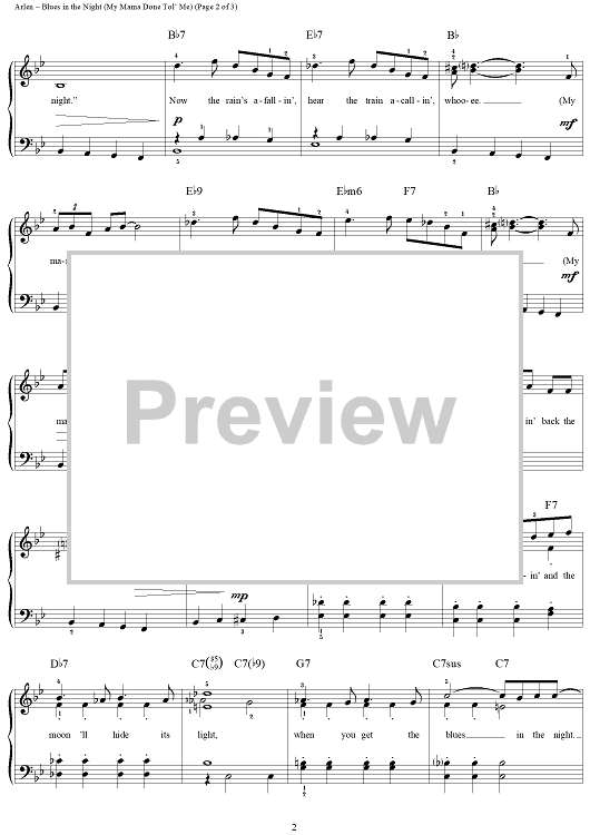 Digital Sheet Music for Blues In The Night (My Mama Done Tol' Me) by Harold Arlen, Johnny Mercer, John Brimhall scored for Easy Piano/Vocal; id:143708