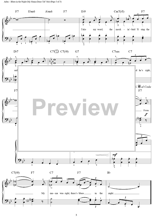 "Blues In The Night (My Mama Done Tol' Me)" Sheet Music by Harold Arlen