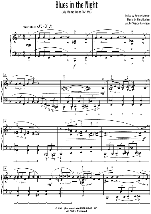 "Blues in the Night (My Mama Done Tol' Me)" Sheet Music by Harold Arlen