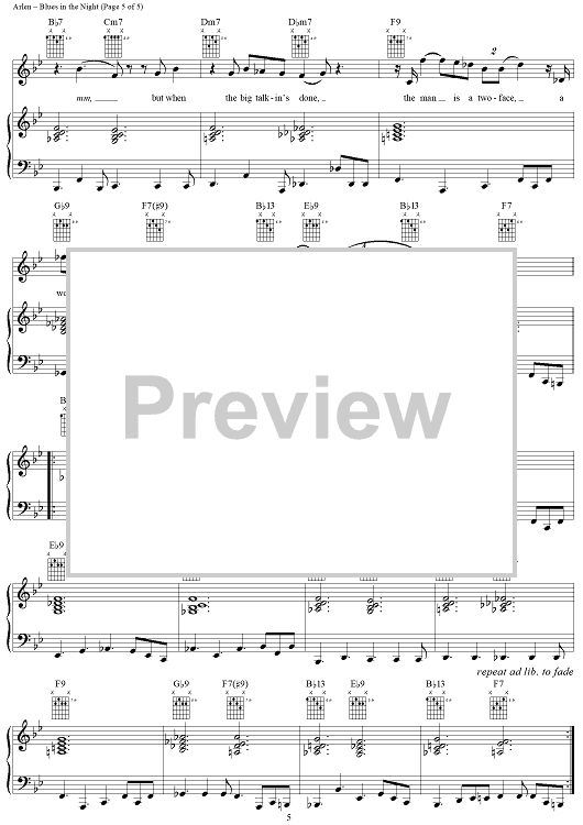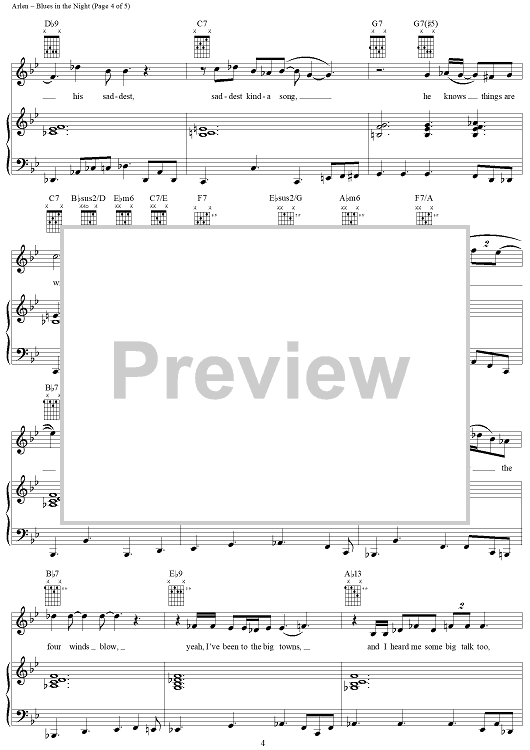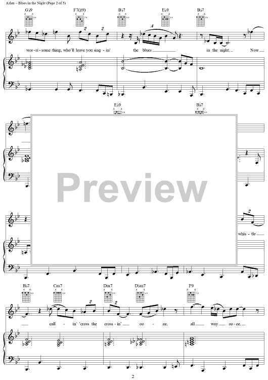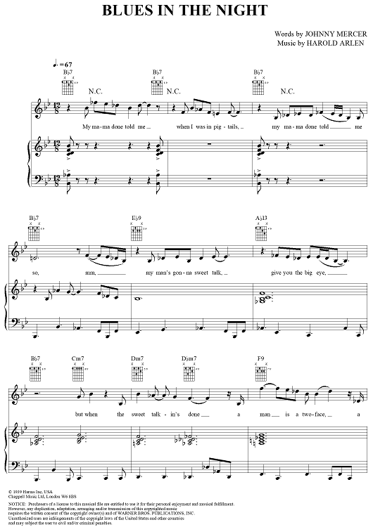Digital Sheet Music for Blues in the Night by Harold Arlen, Johnny Mercer, Eva Cassidy scored for Piano/Vocal/Chords; id:297081