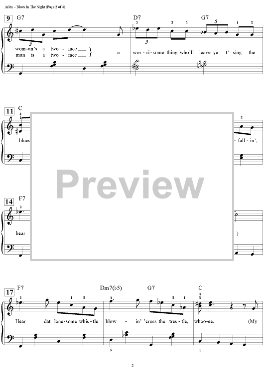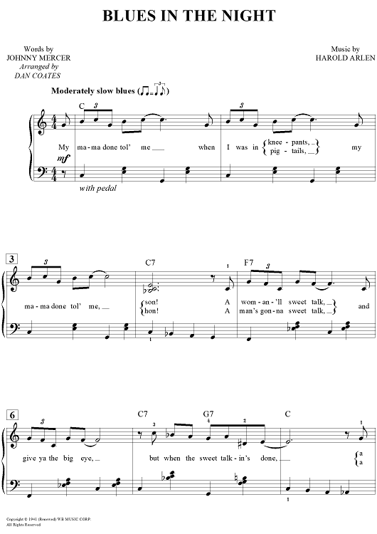 Digital Sheet Music for Blues in the Night by Harold Arlen, Dan Coates, Johnny Mercer scored for Easy Piano/Vocal/Chords; id:457283