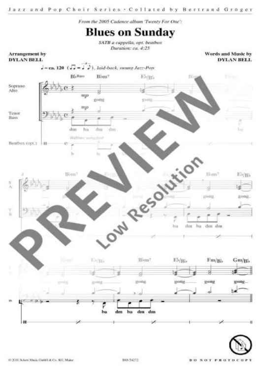 "Blues on Sunday - Choral Score" Sheet Music by Dylan Bell