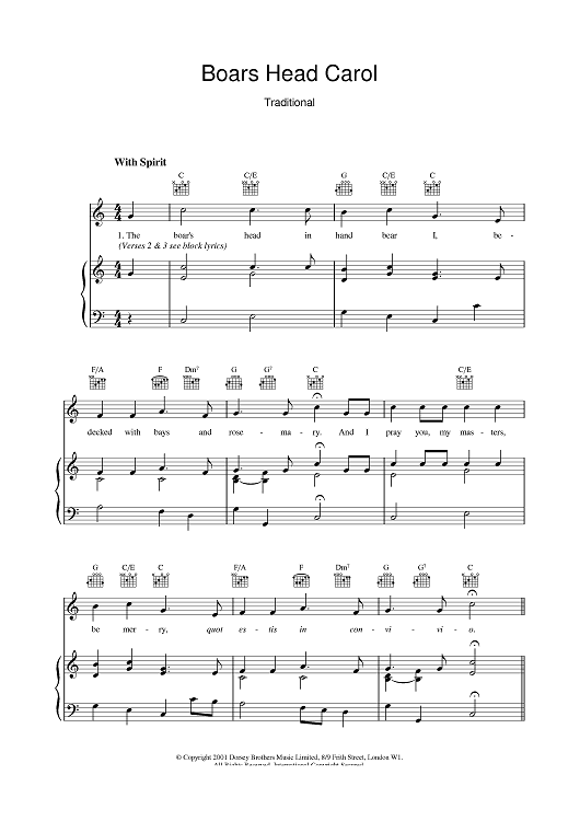 Digital Sheet Music for Boars Head Carol by scored for Piano/Vocal/Chords; id:377436