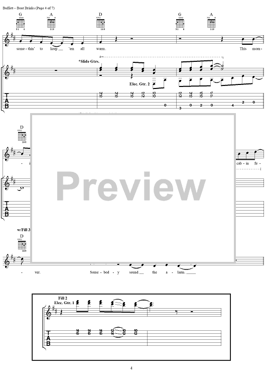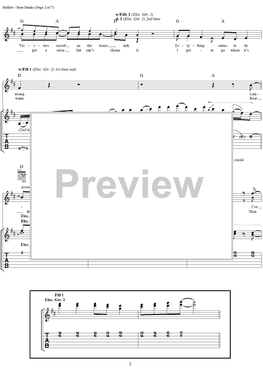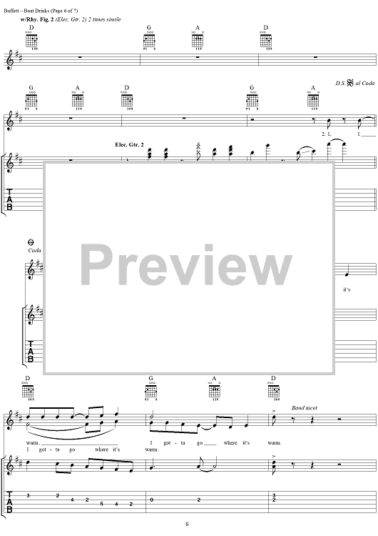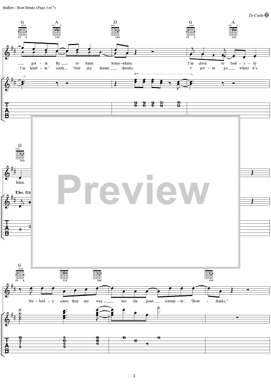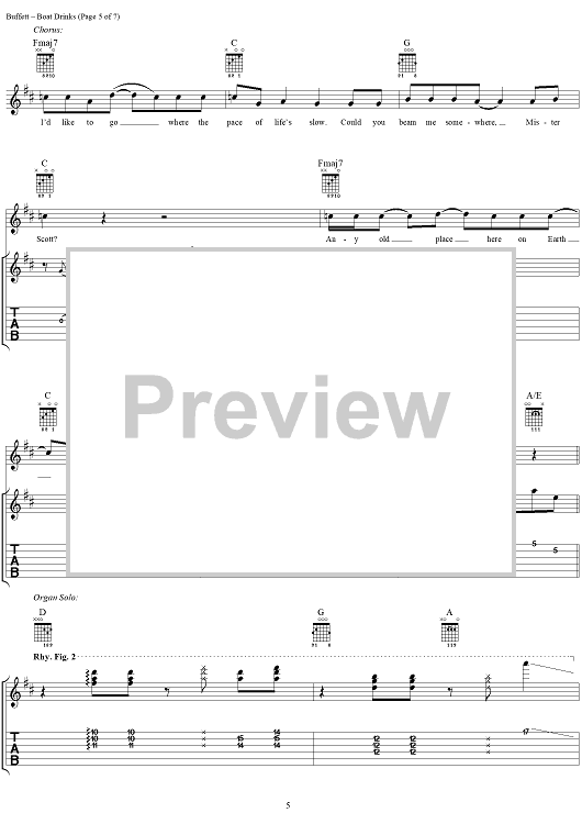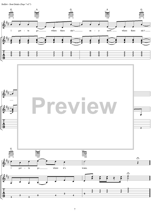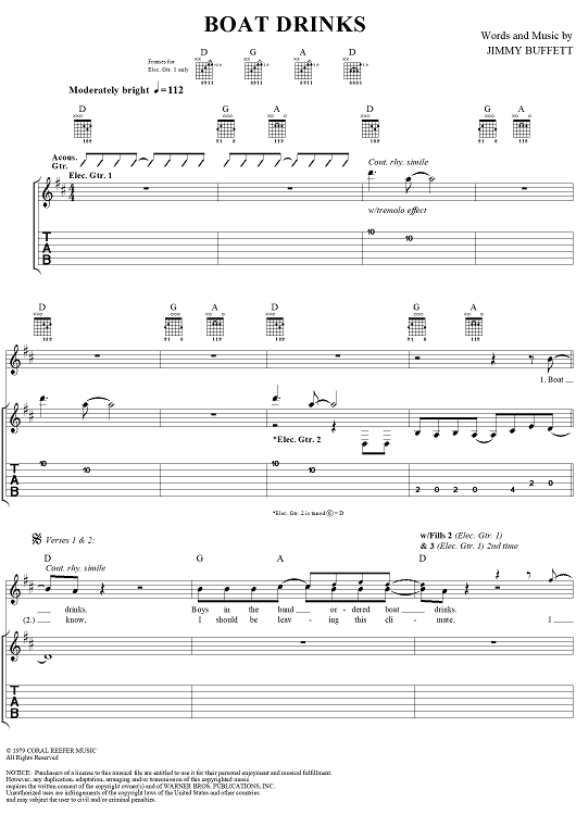Digital Sheet Music for Boat Drinks by Mike Taylor, Jimmy Buffett scored for Guitar Tab/Vocal; id:284338