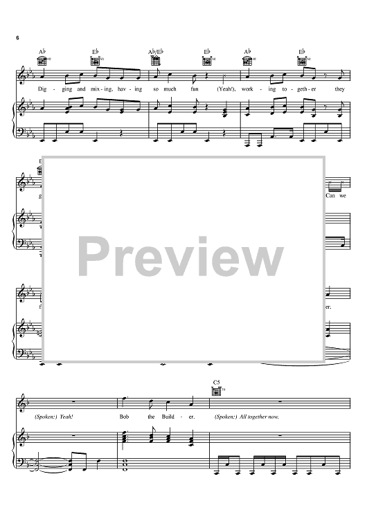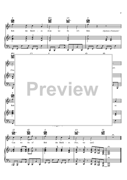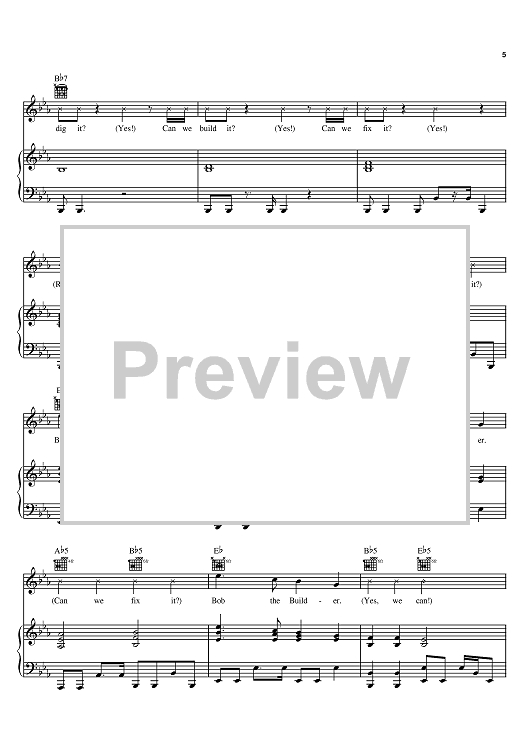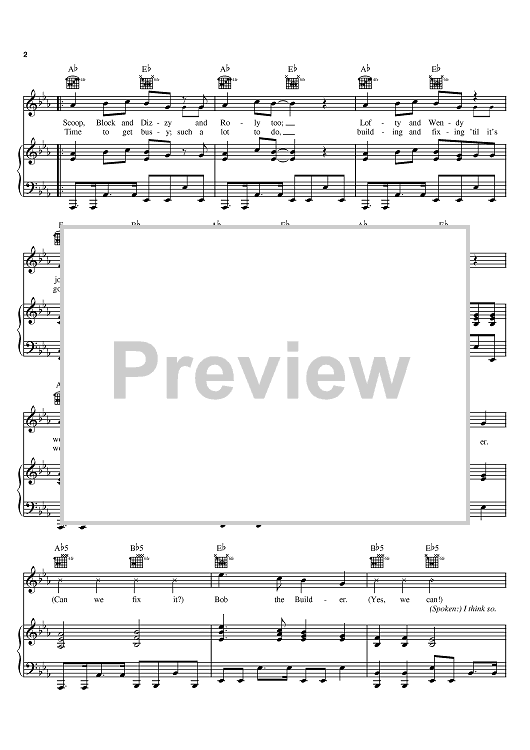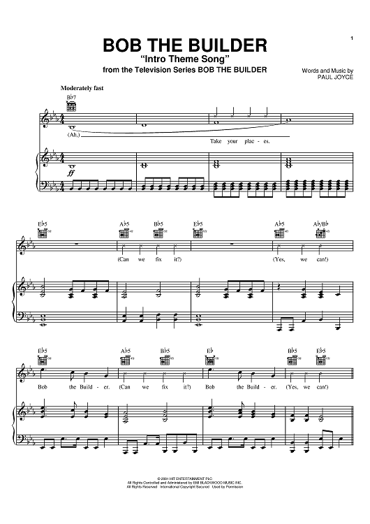 Digital Sheet Music for Bob The Builder 'Intro Theme Song' by Paul Joyce scored for Piano/Vocal/Chords; id:370660
