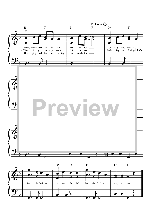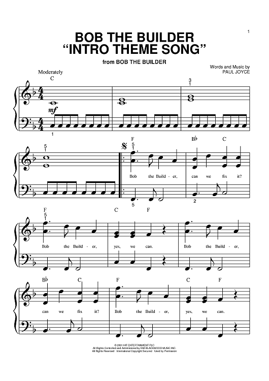 "Bob The Builder 'Intro Theme Song'" Sheet Music by Paul Joyce