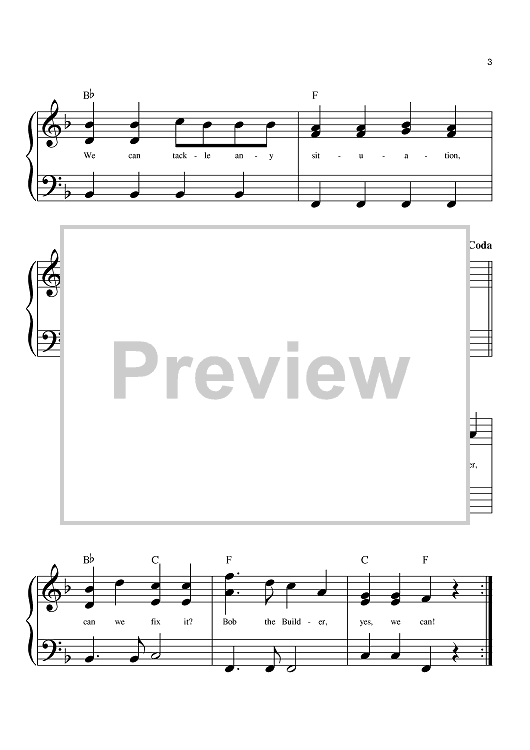 Digital Sheet Music for Bob The Builder 'Intro Theme Song' by Paul Joyce scored for Big Note Piano; id:372823