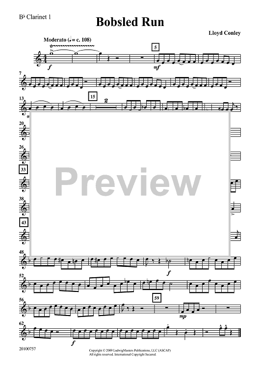"Bobsled Run - Bb Clarinet 1" Sheet Music by Lloyd Conley