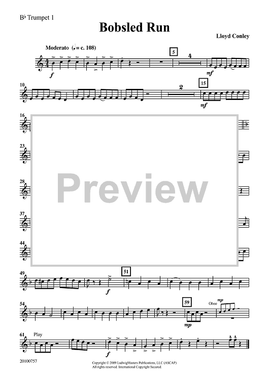 "Bobsled Run - Bb Trumpet 1" Sheet Music by Lloyd Conley