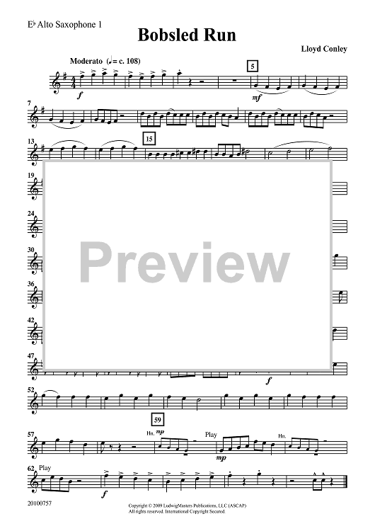 "Bobsled Run - Eb Alto Sax 1" Sheet Music by Lloyd Conley