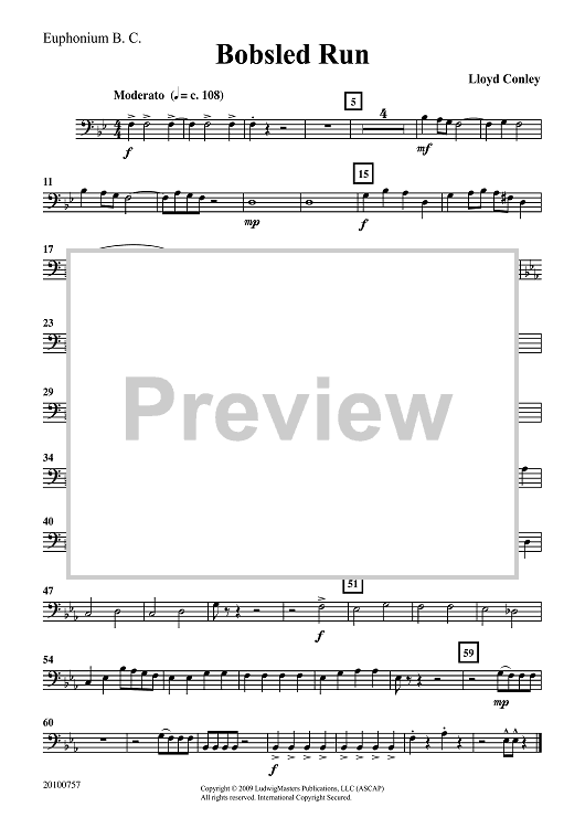 Digital Sheet Music for Bobsled Run - Euphoniums TC/BC by Lloyd Conley scored for Concert Band; id:502966