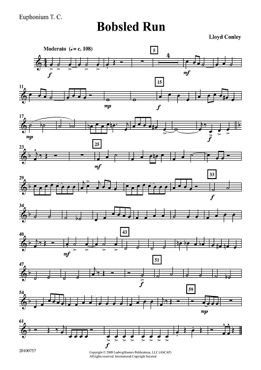 "Bobsled Run - Euphoniums TC/BC" Sheet Music by Lloyd Conley