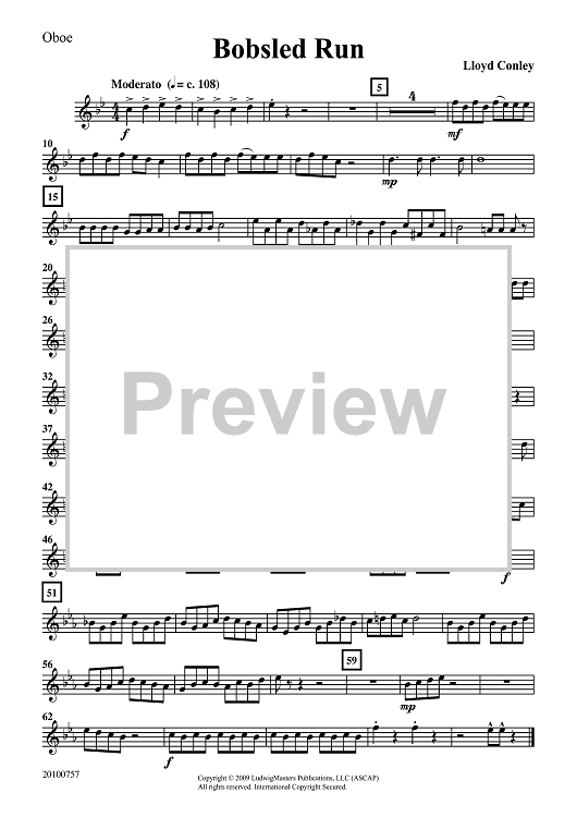 "Bobsled Run - Oboe" Sheet Music by Lloyd Conley