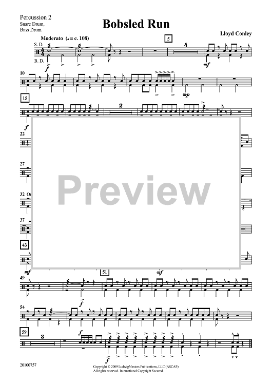 "Bobsled Run - Percussion 2" Sheet Music by Lloyd Conley