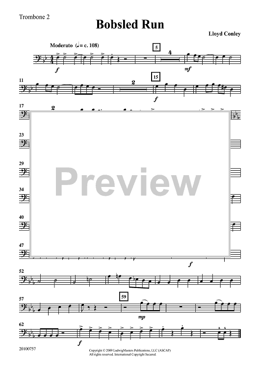 "Bobsled Run - Trombone 2" Sheet Music by Lloyd Conley