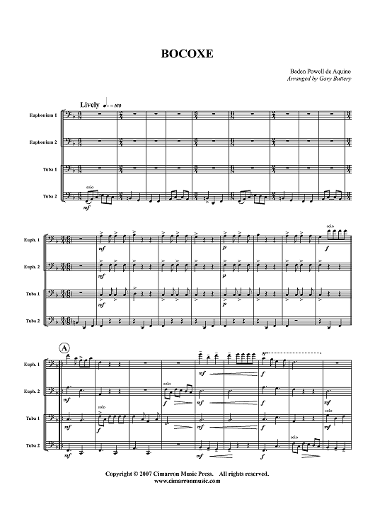 Digital Sheet Music for Bocoxe - Score by Gary Buttery, Baden Powell scored for Tuba Quartet; id:426771