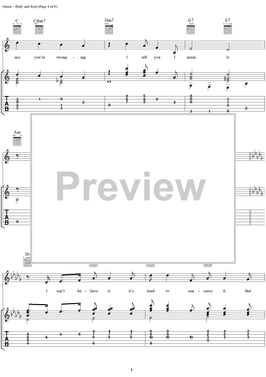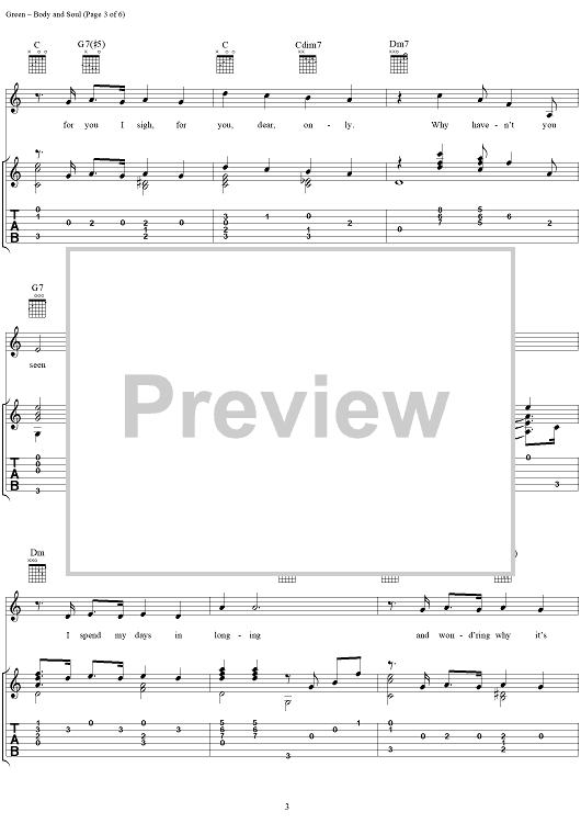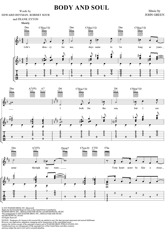 Digital Sheet Music for Body and Soul by Louis Armstrong, Edward Heyman, Paul Whiteman, Johnny Green, Frank Eyton, Robert Sour, Jerry Silverman, Benny Goodman scored for Guitar Tab/Vocal; id:120255