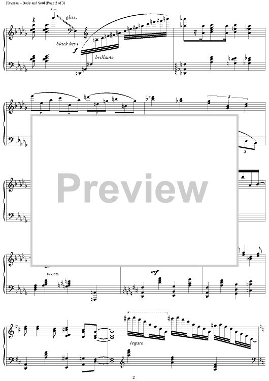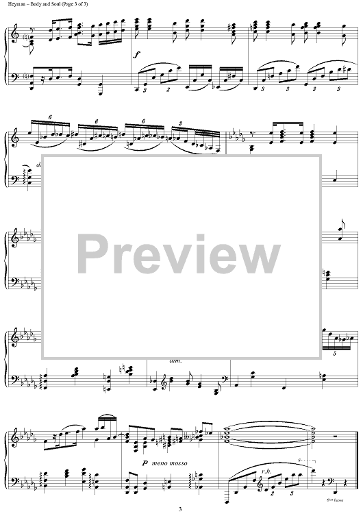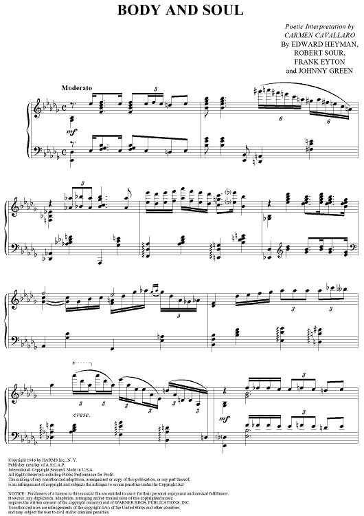 Digital Sheet Music for Body and Soul by Edward Heyman, Johnny Green, Frank Eyton, Robert Sour, Carmen Cavallaro scored for Piano Solo; id:355004